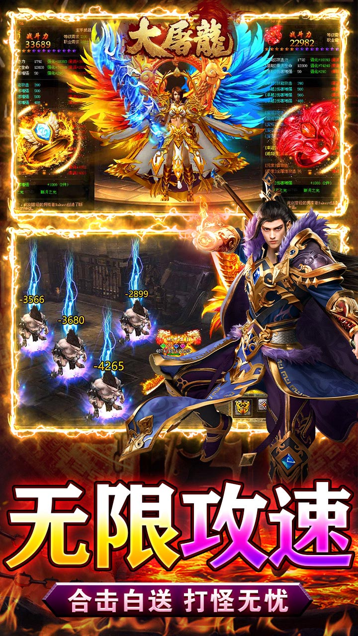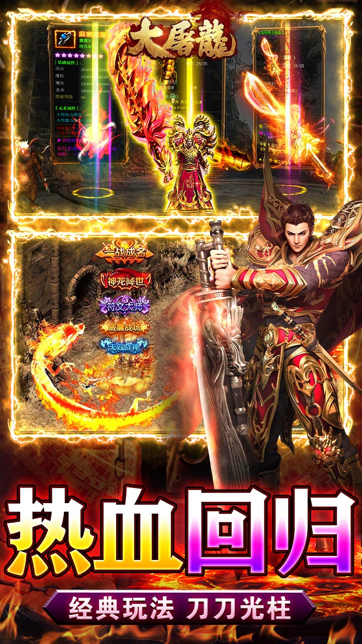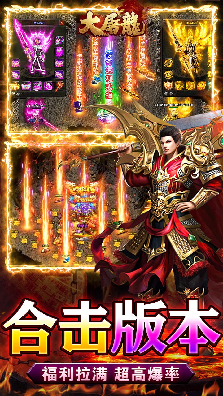 《大屠龙》是一款耗时一年精心制作的单职业合击传奇手游,游戏创造性的采用了战战合击的玩法,而且加入了大量福利,打怪就爆红包,刀刀爆光柱,合击上线送,2022首款战战合击版本,值得你尝试!
