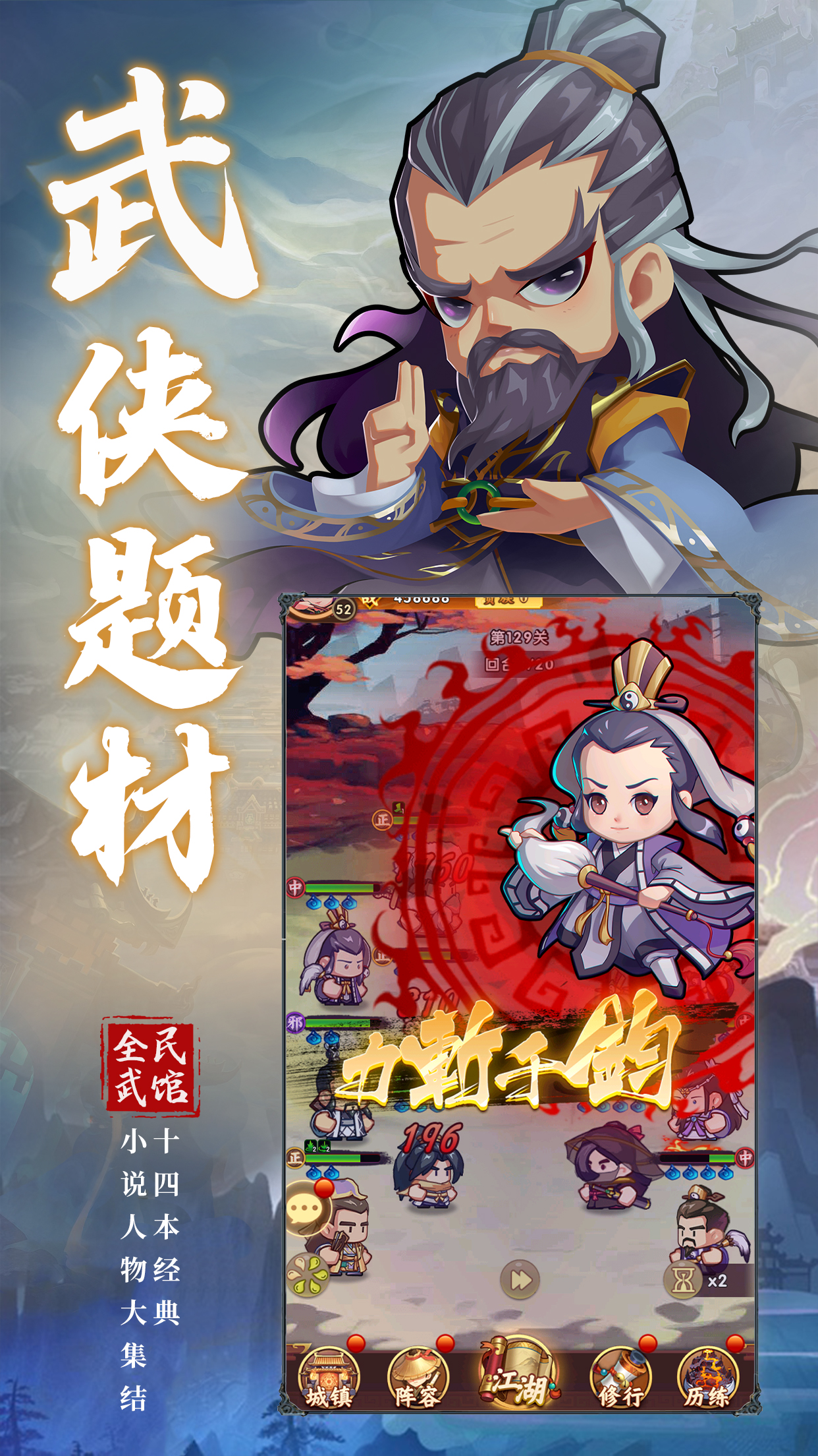 采用unity3d技术制作,在传统的卡牌养成体系上加入了抽卡,武侠碎片收集,PVP,PVE; 游戏内容上注重战斗布阵策略,强化收集和养成,同时引入丰富有趣的组队和社交玩法;可视化动作,华丽的武林神技,群侠角力,回合战斗爽翻天。