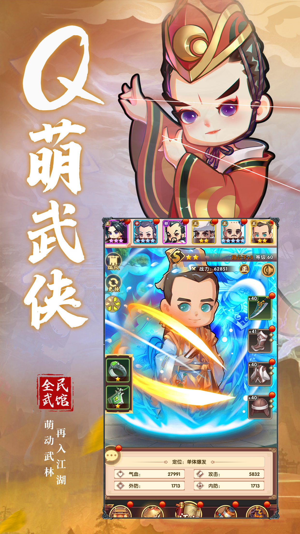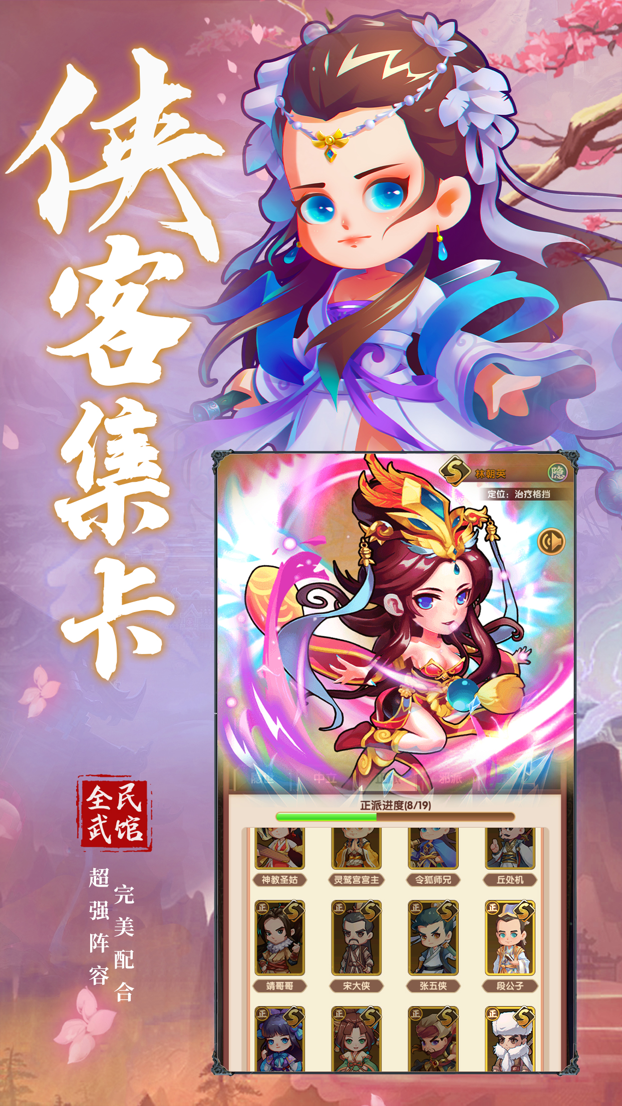 一款集合策略 九宫格回合制战斗 武侠题材为一体的卡牌游戏。