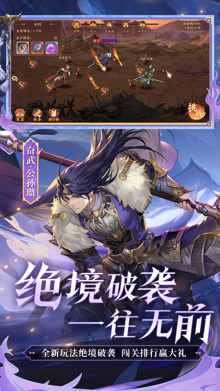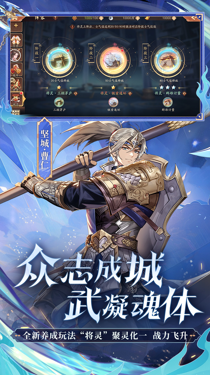 众志成城 武凝魂体 《少年三国志2》灵威天降版本恢弘开启!全新第五代天金武将万御将军扫苍穹,镇八方!凌绝邓艾、笃烈太史慈、陷国董卓、更有版本强势武将惊龙赵云登场!古来冲阵扶危主,只有常山赵子龙!全新模拟经营玩法“筑城兴市”开启! 高自由度开放玩法,做自己的城主!“将灵阁”聚灵化一,武凝魂体,将灵养成伴少年一同前行!活动产出,武将升星,即可获取天地将灵!镶嵌增益全场战力飞升!缘分羁绊激活,属性天赋大突破!勇斗神将,驱魔降邪,悬赏互助,世家军团成员强力助阵,携手共闯遗迹!探秘寻踪 征邪伐恶“将灵遗迹”同步开启!灵荒之地,神秘莫测,将灵遗迹裂地而起!齐心通关,戮力前行,奖励拿不停!新服直送200抽、上万元宝免费拿!