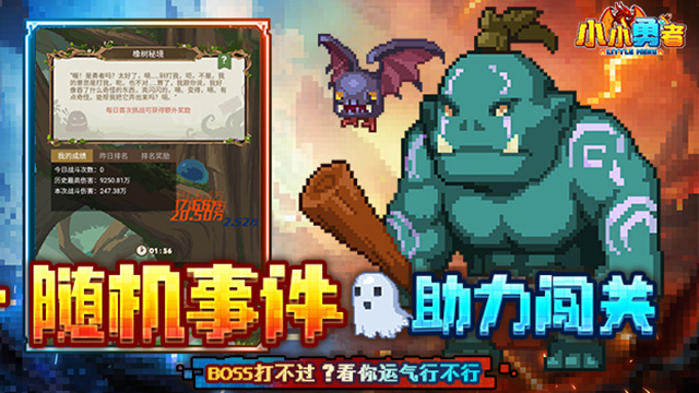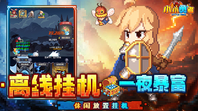 《小小勇者》是一款放置类游戏,游戏讲述了在魔物肆虐的灾厄年代里,年轻的勇者为了拯救家园而进发的冒险征途。在游戏中,玩家主要通过触发事件系统里出现的各种随机事件,从而与各种角色进行互动,打造强大装备、结识信赖同伴,