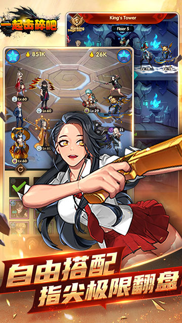 《一起击碎吧》是一款放置类策略游戏,以架空的魔幻世界为背景,在游戏中你可以招募不同阵营的英雄,来组建只属于你的队伍。你需要合理部署阵容搭配,让队伍发挥最强大的实力,带领队伍走向最终的胜利!